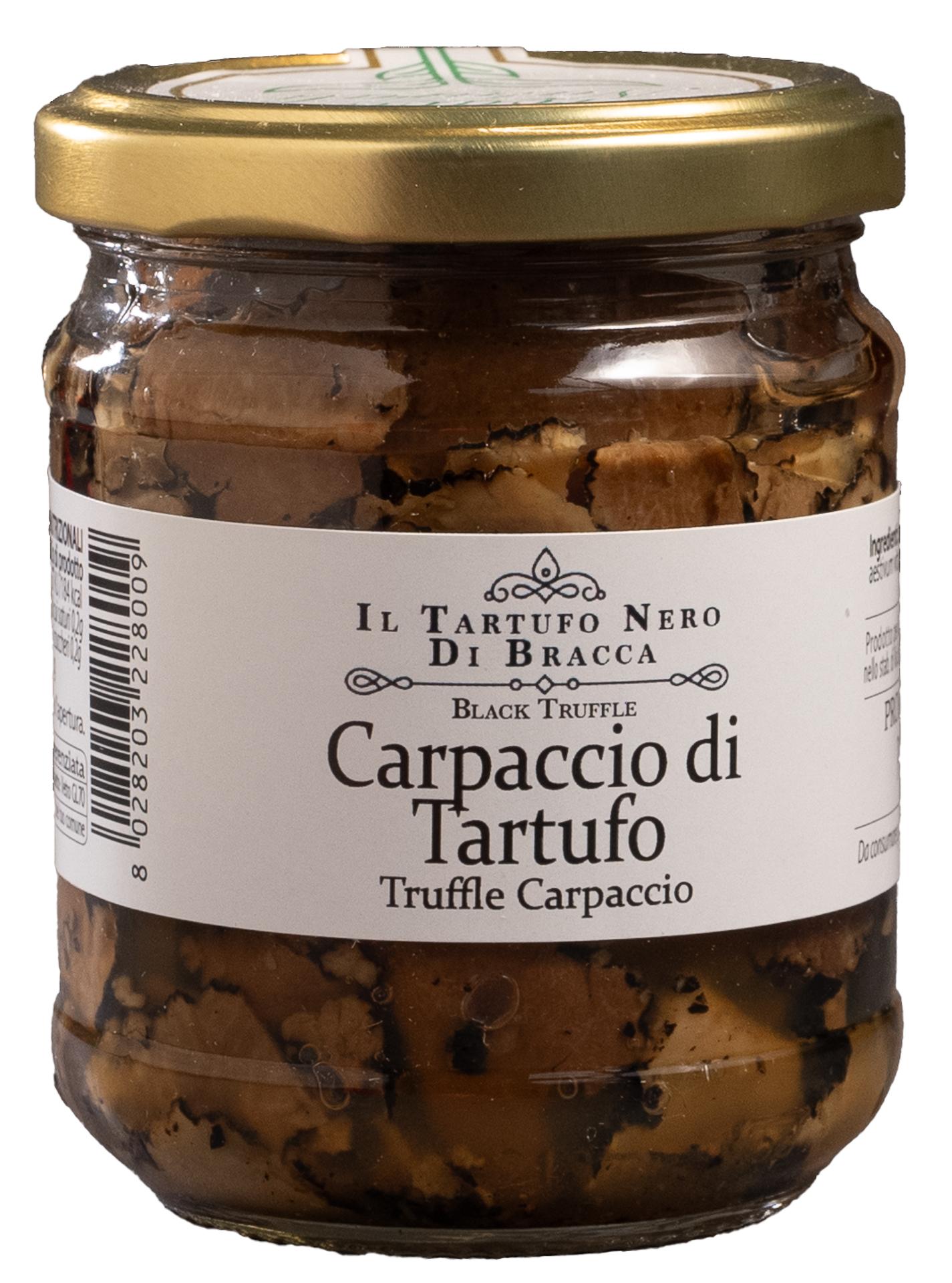 Il Carpaccio di Tartufo Nero Estivo in acqua, olio, sale e aromi, è disponibile in vasetti di vetro di diversi formati.